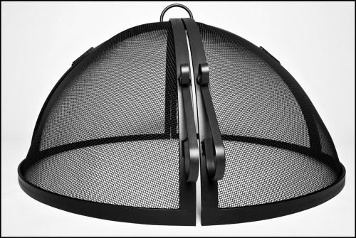 The Hinged Round model fire pit allows access for simple fire management. For round shaped fire pits, this screen prevents sparks and embers from flying out of the pit - even in the wind. Helps prevent accidents, contains incendiary sparks, ash and soot. Two hinged doors (panels with decorative handle) allow access and simple fire management. Features: Solid steel flat bar framework. Steel mesh screen (23 gauge steel wire). 304 Stainless Steel - Frame in black high temperature powder coat. High heat-resistant electrostatically applied, weather-resistant black finish. Screens up to 47" diameter are four panel; Screens 48" and over are eight panel. Made in USA. Specifications: Overall Dimensions: 45" (W) x 45" (D) x 17" (H). Flat Bar: 0.25" x 1". Mesh screen: 8 x 8 per/sq. in.