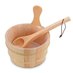 4L Wooden Sauna Bucket with Plastic Liner and Ladle - Handmade Sauna and SPA Accessory - Single Handle (1 Gallon)