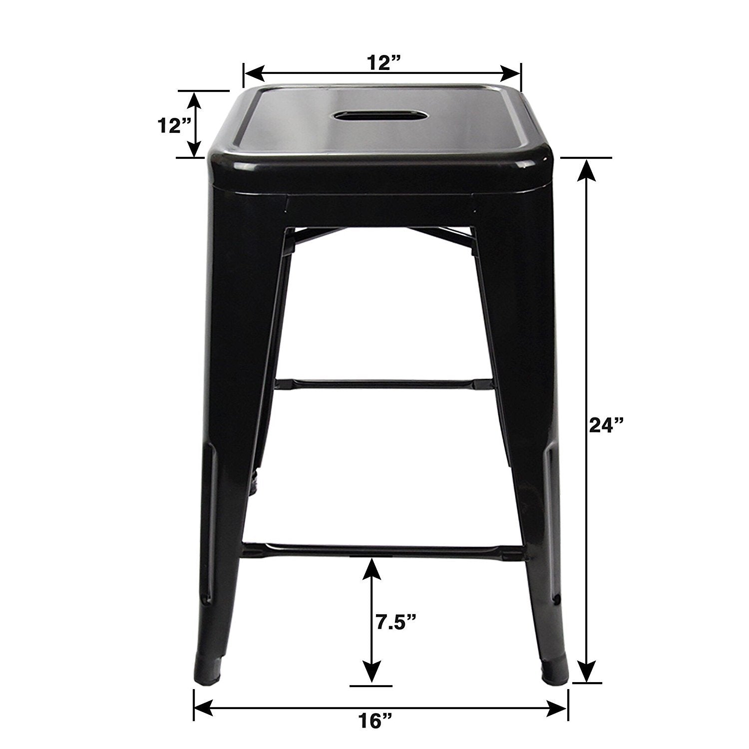 24” Counter Height Bar Stools,! (BLACK) by UrbanMod, [Set Of 4] Stackable, Indoor/Outdoor, Kitchen Bar Stools,! 330LB Limit, Metal Bar Stools! Industrial, Galvanized Steel, Counter Stools!