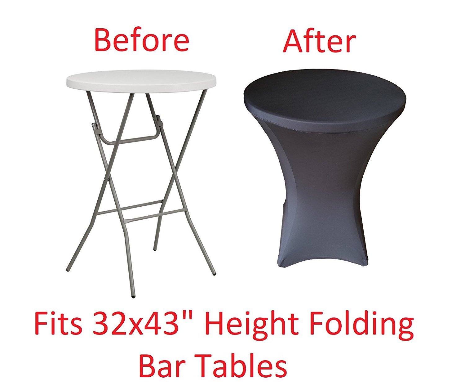 32 Round x 43" Tall Spandex Fitted Table Cover for Folding Bar Height Tables (Black)