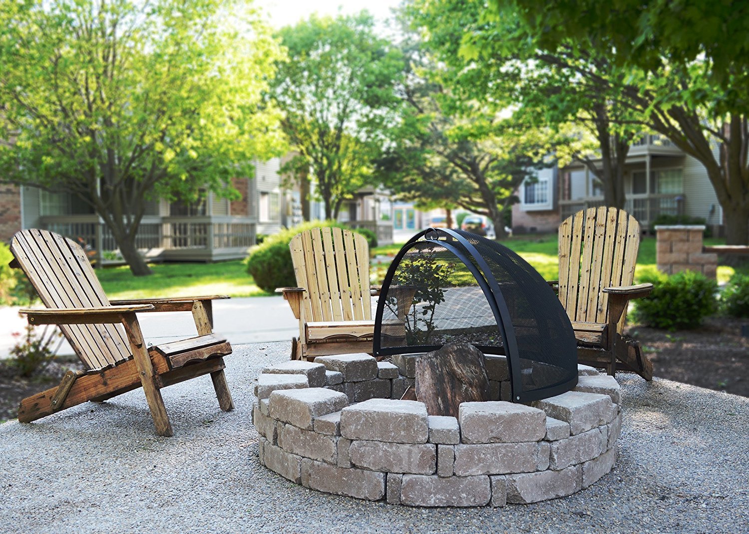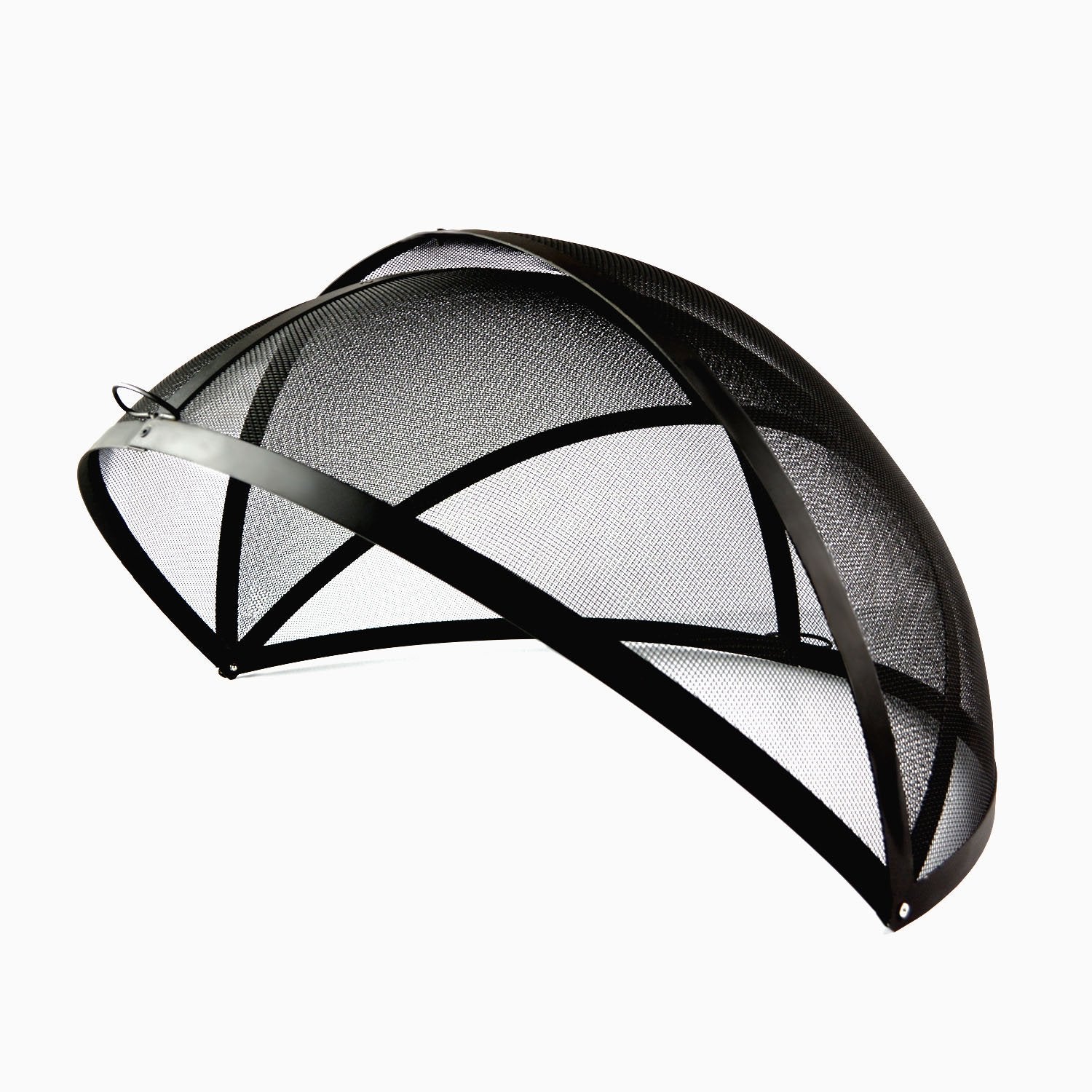 Heavy duty steel 36" diameter fire pit spark screen. 36 Inch safety screen comes in 4 pieces which forms a dome shape when put together. You don't need to remove it from the fire pit to tend the fire. Hinges incorporated in our design let half of the dome mesh screen slide inside the other half.