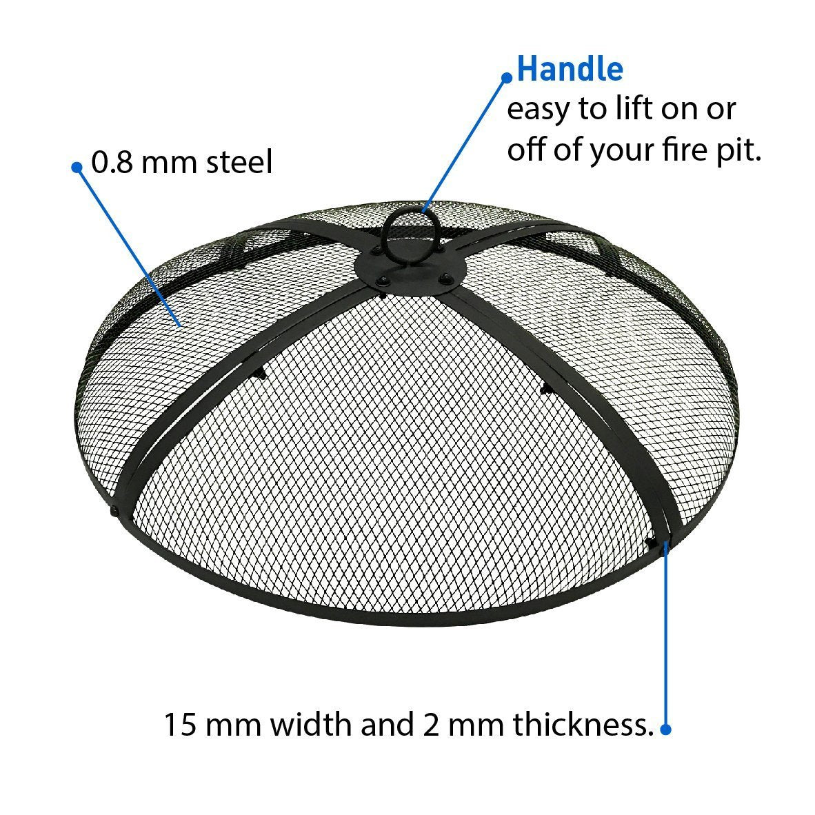 DURABLE AND STRONG - Fire pit screens are made of durable heavy duty black powder coated steel and mesh screen steel has a diameter of 0.8 mm steel. Frame bars holding the mesh screen are 15 mm width and 2 mm thickness.