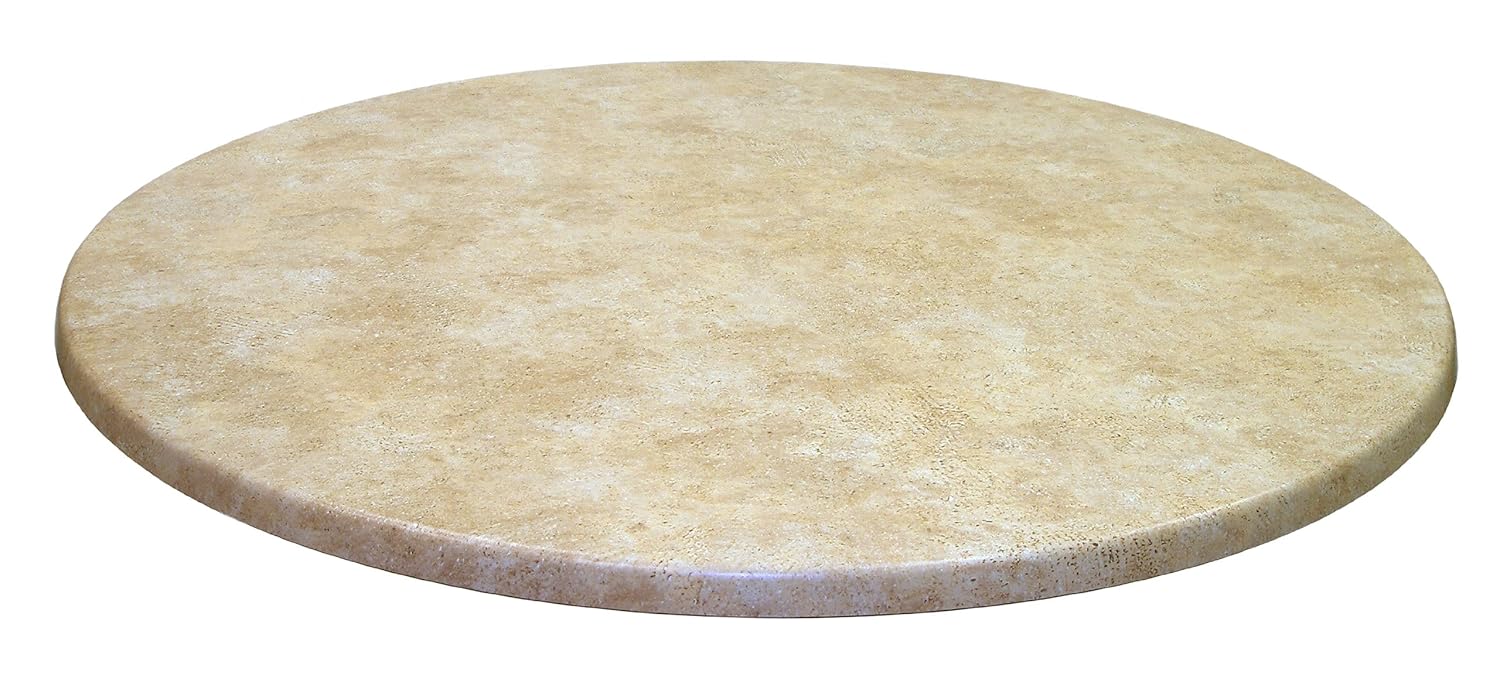 Durable choice for your indoor or outdoor table needs. Seamless, weather-resistant and water-resistant table top withstands even the most harsh of climates. Melamine top and bottom surfaces are fused to a chopped hardwood substrate that has been resin-impregnated. Able to withstand all mechanical, thermal and chemical impacts. Built for commercial use. Dimensions: 42-inch diameter.