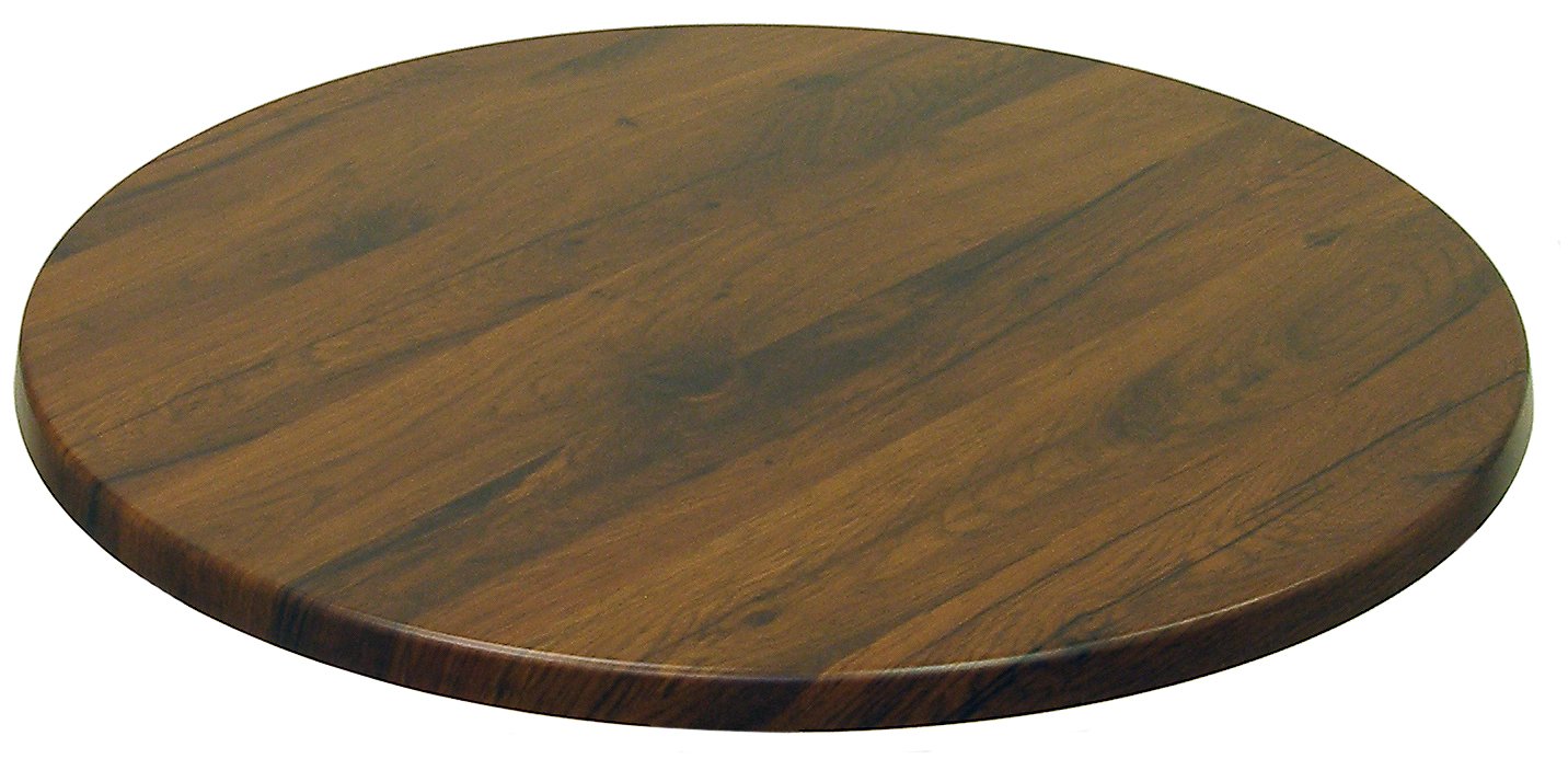 Durable choice for your indoor or outdoor table needs. Seamless, weather-resistant and water-resistant table top withstands even the most harsh of climates. Melamine top and bottom surfaces are fused to a chopped hardwood substrate that has been resin-impregnated. Able to withstand all mechanical, thermal and chemical impacts. Built for commercial use. Dimensions: 42-inch diameter.