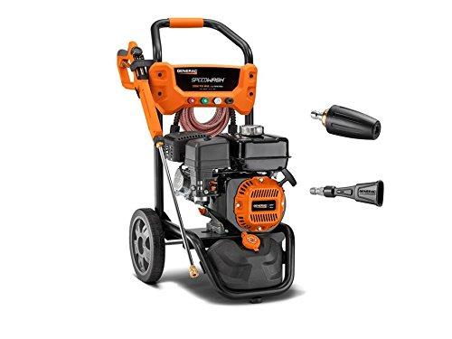 Generac's SPEEDWASH 6882 gas powered pressure washer provides you with a complete washing system featuring best-in-class cleaning power. This complete cleaning system includes a family of innovative cleaning attachments (turbo nozzle and soap blaster) to deliver better cleaning results in less time. The turbo nozzle attachment with rotating pinpoint stream is designed to remove stubborn dirt and grime off tough surfaces 30% faster than standard nozzles while the soap blaster attachment sprays soap 3X farther than a standard nozzle tip to penetrate tough stains and improve cleaning results.